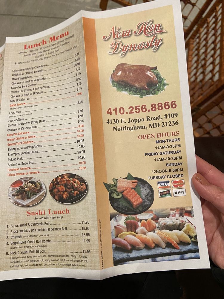 New Han Dynasty, located in Nottingham, MD, offers a diverse Chinese menu with a focus on traditional and authentic dishes. The restaurant provides a classy dining experience with options for both dine-in and takeout. Customers praise the flavorful dishes, such as the beef chow fun, stewed beef and radish, and the world-renowned calamari. The establishment also caters to vegetarian preferences and offers a variety of lunch specials. With accommodating service, ample parking, and convenient online ordering, New Han Dynasty is a popular spot for those looking to enjoy tasty Asian cuisine in the Perry Hall area. Whether dining solo or with a group, this hidden gem is sure to satisfy your craving for delicious Chinese food.